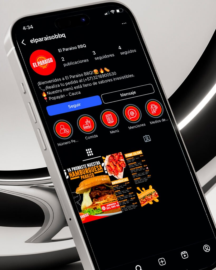 La identidad visual incorpora elementos que evocan el placer de compartir una buena comida, resaltando el calor del fuego, la textura de la parrilla y el ambiente familiar y festivo que caracteriza a El Paraíso BBQ. El resultado fue una marca que no solo se ve bien, sino que abre el apetito y genera confianza desde el primer vistazo.